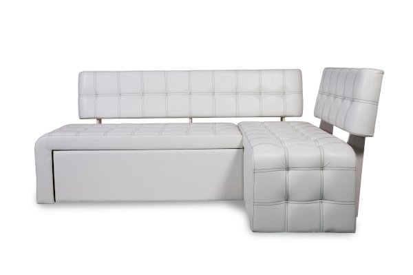 Кухонный диван Прага декорирован двойной отстрочкой в виде квадратов, в контраст с основным цветом обивки.