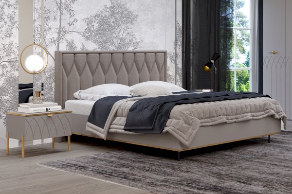 Самые модные тенденции нашли свое отражение в облике кровати Капри 2 – фигурная строчка на мягком изголовье, золотая кромка и металлические опоры. Двуспальная кровать выполнена в популярных оттенках серого цвета и гармонично впишется в современный интерьер.