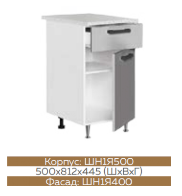 ШН1Д1Я600 Шкаф нижний с 1-м ящиком и 1-й дверью Белый снег софт/Графит софт