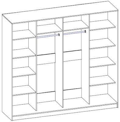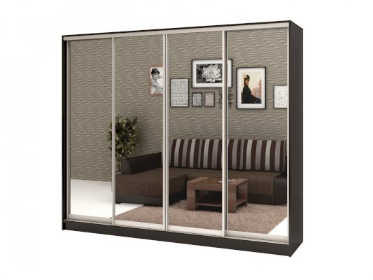 корпус - Венге Цаво, фасады - зеркало, рамка двери и треки - Серебро матовое.