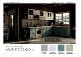 Кухня Ампир изговаливается также в цветах серый/роялвуд сирень; серый/роялвуд бирюза; серый/роялвуд голубой. Модули в этих цветовых решениях вы сможете найти в нашем интернет-магазине.