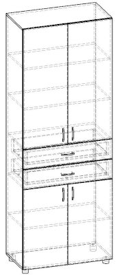 Стеллаж 4 двери и 2 ящика Лидер СТ.029.800-01 (Баронс)