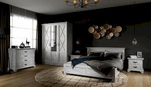 Тумба с фасадами цвета «Бетон пайн» с фактурой и рисунком натурального дерева добавят помещению света и сделают ее воздушней. Металлические ручки цвета состаренного серебра придают изысканность, а фигурные ножки и декоративный профиль крышки подчеркивают стилистику коллекции. Ящики на телескопических направляющих поместят в себя все необходимые предметы, которые важно иметь под рукой - телефон, очки, светильник или любимая книга. Мебель выполнена из экологичных материалов.