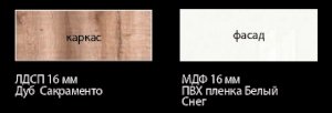 Каркас: ЛДСП 16 мм в декоре «Дуб Сакраменто»