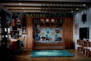 Шкаф для белья поможет подростку рассортировать и держать в порядке свои вещи. Узкий и высокий шкаф-пенал с четырьмя полками, регулируемыми по высоте. Глухой фасад в декоре Дуб Табачный с ручкой из массива цвета серый металлик. Шкаф собирается как на левую, так и на правую сторону. Для надежности рекомендуем крепить шкаф к стене на подвесы.