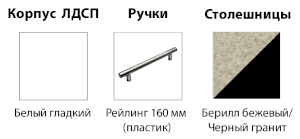 4. Столешница толщиной 26 мм изготавливается из влагостойкой ДСП в цветах: Берилл бежевый или Черный графит на выбор (заказывается отдельно). Глубина 600 мм.