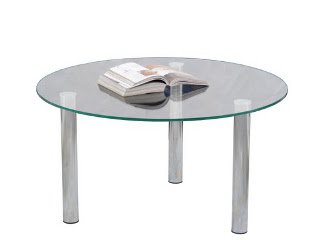 Журнальный стол - стеклянная круглая столешница, ножки металлические с фетровыми подпятниками.