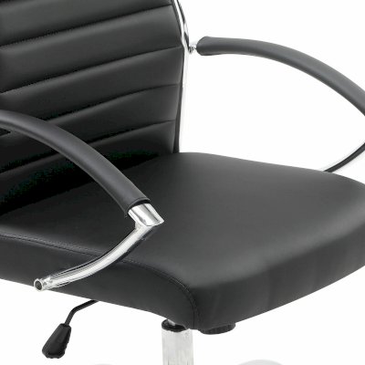 Обивка выполнена из экокожи улучшенного качества – современного материала на хлопковой основе. Благодаря ей и пористому полиуретану экокожа отлично пропускает воздух, что положительным образом сказывается на комфорте во время эксплуатации. Материал износоустойчив - кресло сохранит привлекательный внешний вид в течение длительного времени. Прочный каркас из хромированного металла не только стильно выглядит, но и прослужит годы.