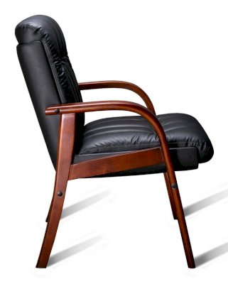 Кресло с низкой спинкой на деревянном каркасе на 4-х ножках, с подлокотниками прямоугольной замкнутой формы с мягкими накладками обитыми в цвет кресла.