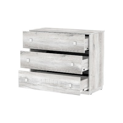 Широкий и вместительный комод выступит хорошим дополнением интерьера спальни, способным подчеркнуть изысканный вкус хозяев. Спокойный натуральный оттенок и красивая древесная текстура выгодно сочетается с темными вставками из ЛДСП. Несмотря на небольшие размеры, комод прекрасно сэкономит свободное пространство помещения. Три выдвижных ящика глубиной 35 см, высотой 14 см и шириной 83 см позволят рассортировать и удобно хранить одежду и аксессуары. Ящики комода оснащены шариковыми направляющими полного выдвижения, благодаря которым легко получить доступ к содержимому отсеков. Надежные металлические ручки не изменят свой внешний вид со временем. А оптимальная ширина столешницы комода позволит легко разместить телевизор диагональю до 40".