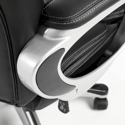 Высокая спинка с широким мягким подголовником и боковой поддержкой выводят эргономику кресла на новый уровень. Обивка выполнена из экокожи высокого качества - современного материала на хлопковой основе. Благодаря тканой основе и пористому полиуретану экокожа отлично пропускает воздух, что положительным образом сказывается на комфорте во время эксплуатации. Материал износоустойчив - кресло сохранит привлекательный внешний вид в течение длительного времени. Наличие перфорации в центральной части кресла обеспечивает дополнительную циркуляцию воздуха.