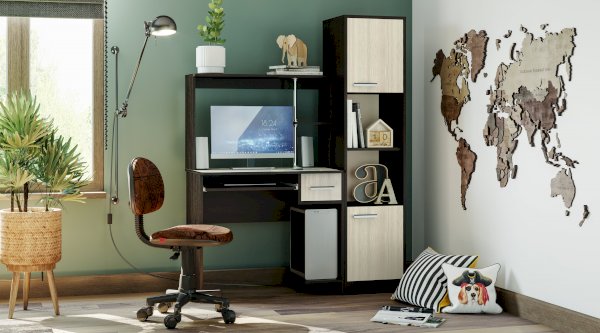 Классическая модель компьютерного стола Дебют имеет все необходимые элементы для размещения стационарного компьютера: вместительную столешницу, отделение для процессора и выкатывающуюся полку для клавиатуры. Стол также оснащен несколькими открытыми зонами хранения и выдвижным ящиком для необходимых в работе вещей.
