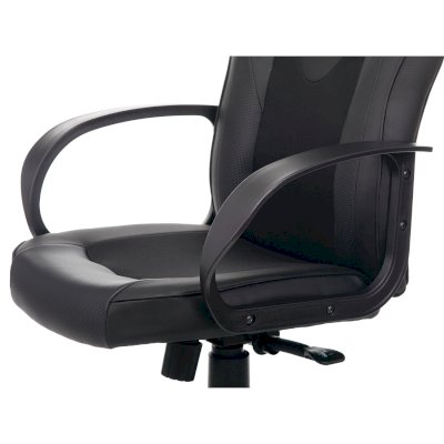 В обивке кресла использованы прочная мебельная ткань и экокожа высокого качества. Материал хорошо пропускает воздух, устойчив к износу, не выцветает и легко чистится.