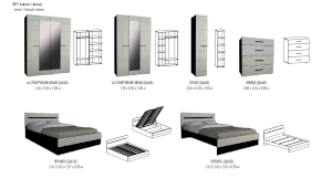Спальное место 1,6х2,0 (ДхВхГ 1,65х2,07х0,90 м) с подъемным механизмом. Внутри есть ящики для белья.