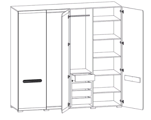 Эта модель большого шкафа серии Ацтека, выполненного в современном минималистичном стиле – полноценная система хранения гардероба, способная полностью избавить от необходимости в других шкафах и комодах для вещей. Это очень удобно и практично, особенно для небольших помещений, где нет места для большого количества мебели. Стильный внешний вид модели украсит и освежит собой любое пространство, сделает его более светлым.