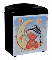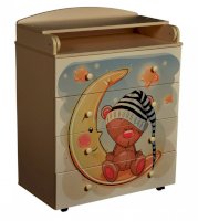 Пеленальный комод 800/4 Lilu 7 отличается привлекательным дизайном с использованием тематических детских принтов. В конструкции изделия предусмотрены 4 маленьких передвижных колеса, несколько вместительных ящичков на шариковых направляющих и откидывающаяся пеленальная столешница. Детский пеленальный комод, декорированный красочным рисунком, вмещает в себя постельные принадлежности, средства гигиены, распашонки, подгузники, игрушки, ползунки и другие личные вещи ребенка. Гладкая столешница идеально подходит для пеленания ребенка, а колесики позволяют быстро перемещать комод.