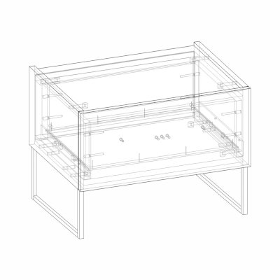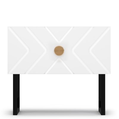 Модель оснащена выдвижным ящиком на направляющих скрытого типа. Высокие металлические опоры делают мебель практичной, уборка в труднодоступных местах становится гораздо проще.