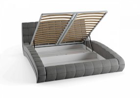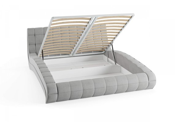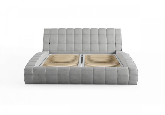 Изящная и элегантная интерьерная кровать с изысканным внешний видом и плавными линиями. В комплект кровати входит кроватное основание. Каркас основания выполнен из металла, ламели - из берёзы. Обратная сторона изголовья также обита основным материалом.