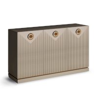 Комодино отличает нарядный внешний вид. Сочетание кремовых оттенков ЛДСП и МДФ в цвете сатин, золотой кромки в основании корпуса и яркой металлической лицевой фурнитуры создает незабываемый нежный образ мебели в стиле модерн.