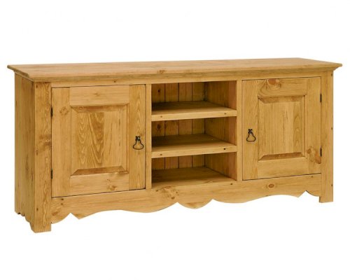 Симметричная тумба шириной 150 см подойдет для телевизоров большого размера. Тумба комбинированная с закрытыми и открытыми отсеками. Классический дизайн тумбы органично впишется практически в любой интерьер. Расстояние между полками - 17 см. За дверями полка.