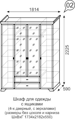Шкаф для одежды 4-х дверный с ящиками с зеркалом №2